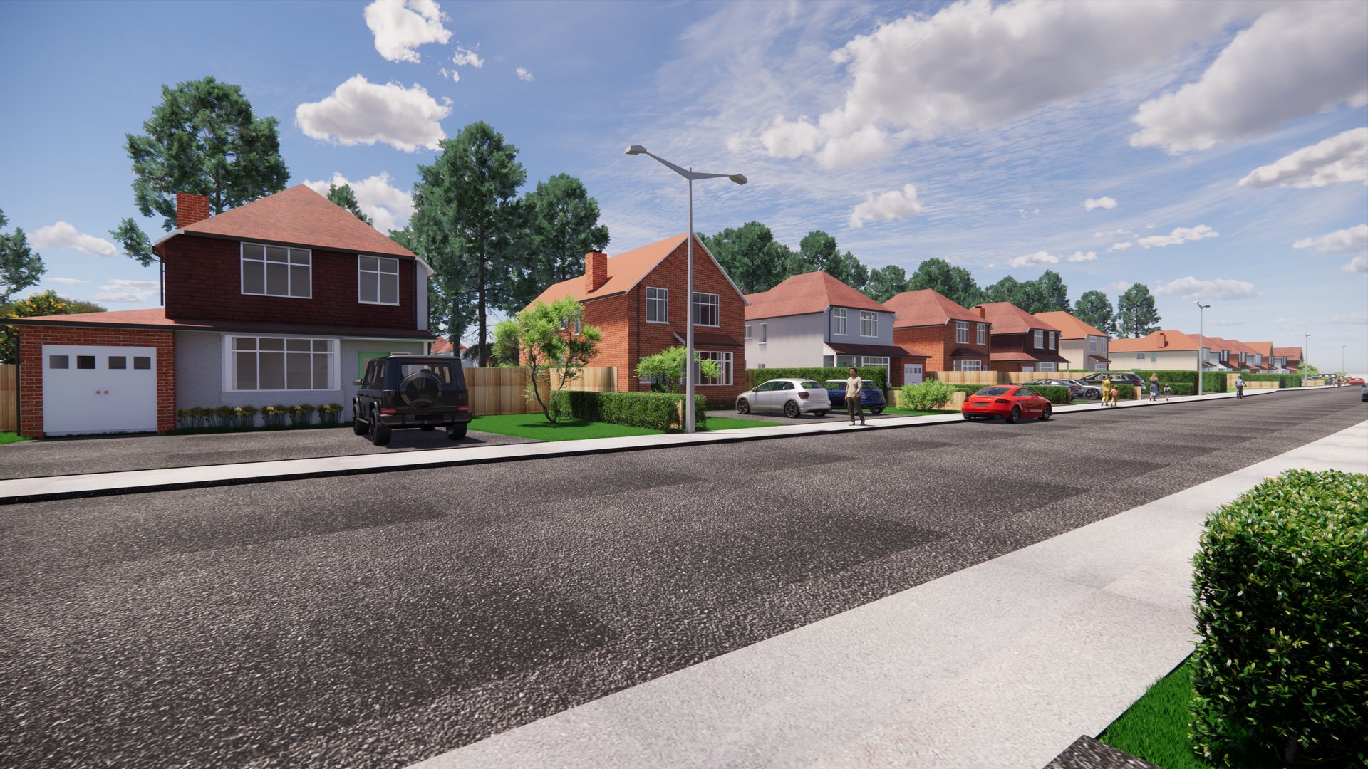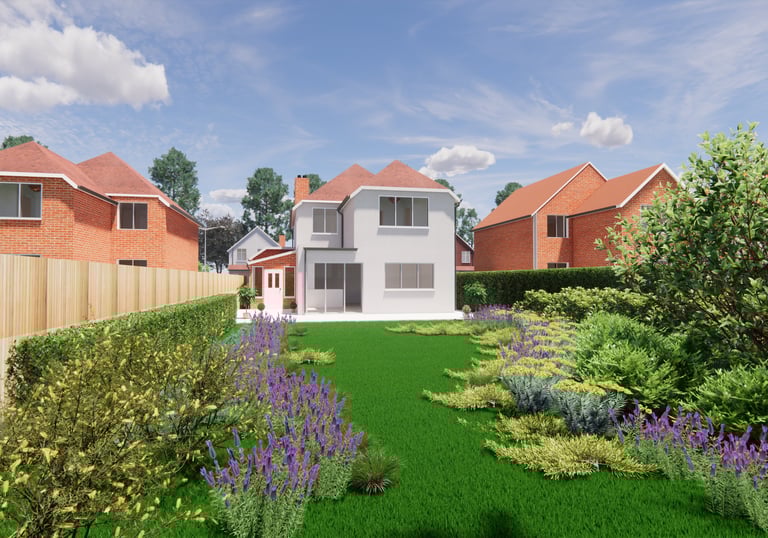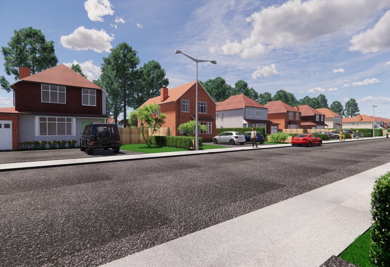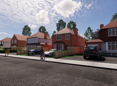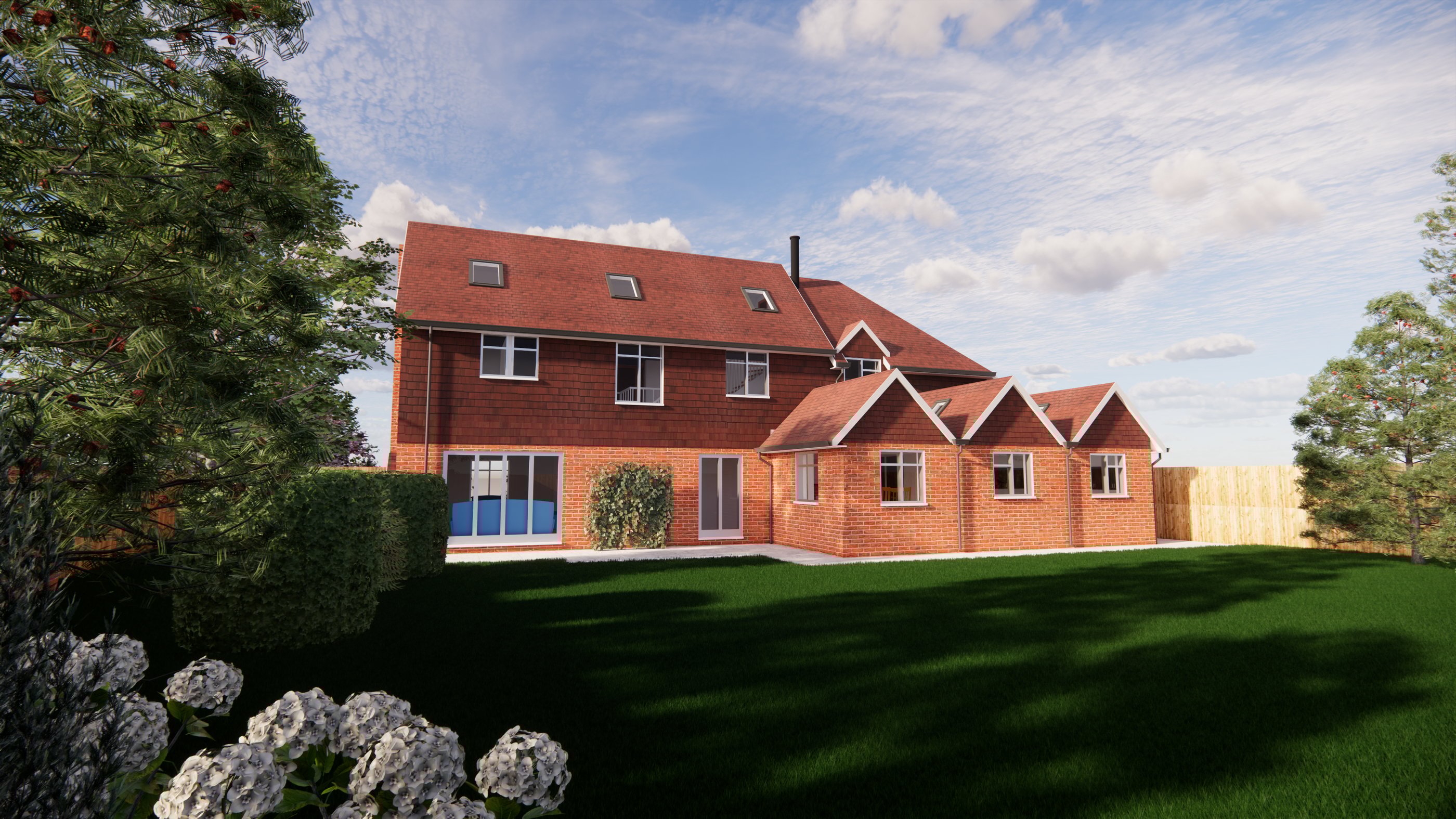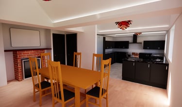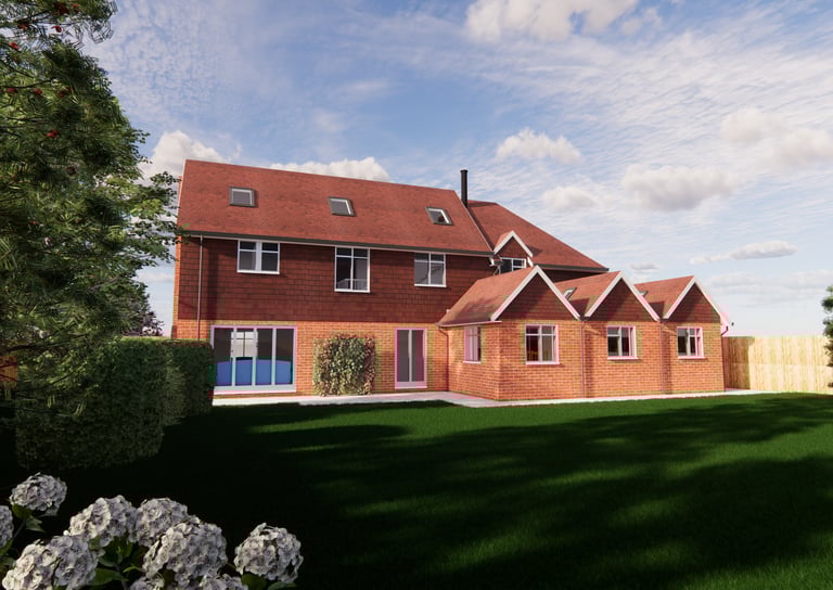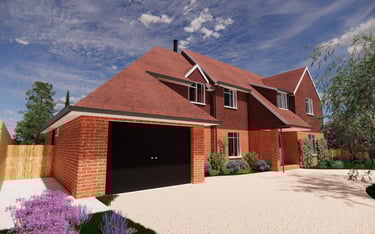 External renders showing the new bedroom, kitchen, utility, garage and loft conversion. These 3D renders gave the client a clearer understanding of what the proposed design will look like before being built.