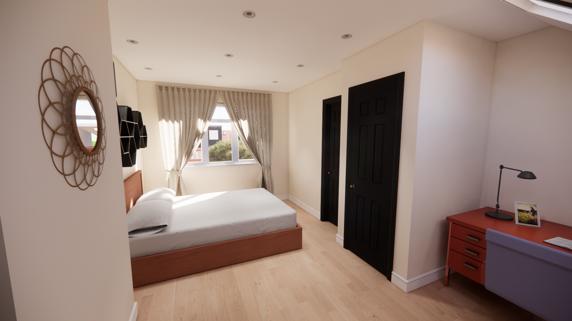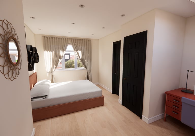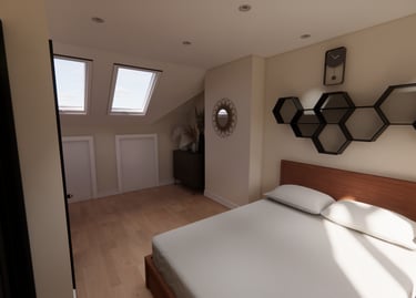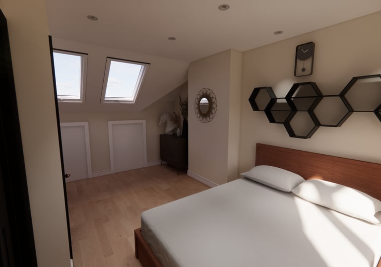 Internal renders showing the new bedroom inside the loft conversion giving the client a clearer understanding of what the proposed design will look like before being built.